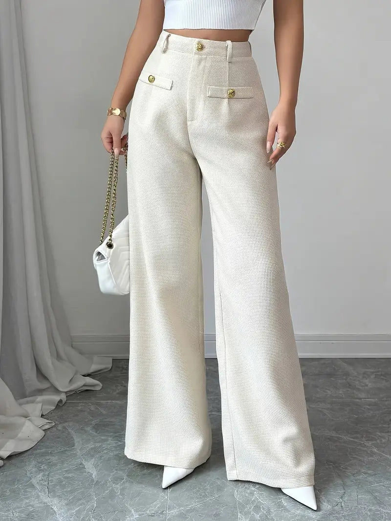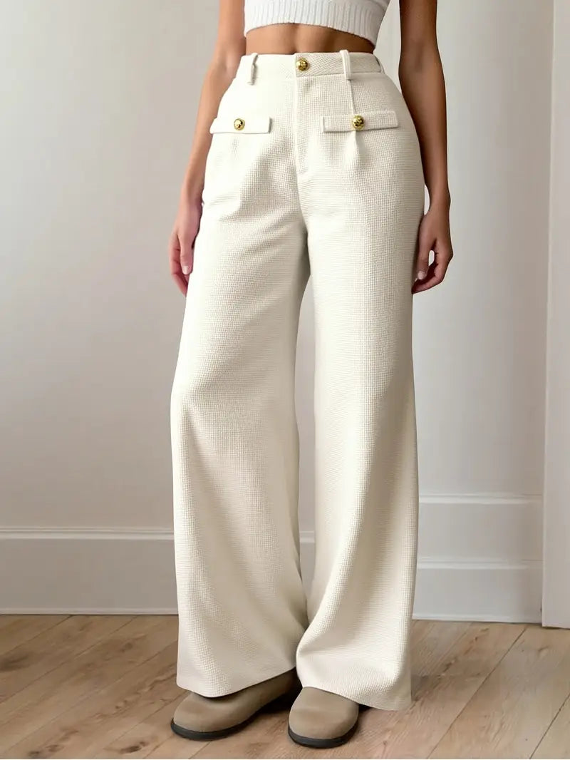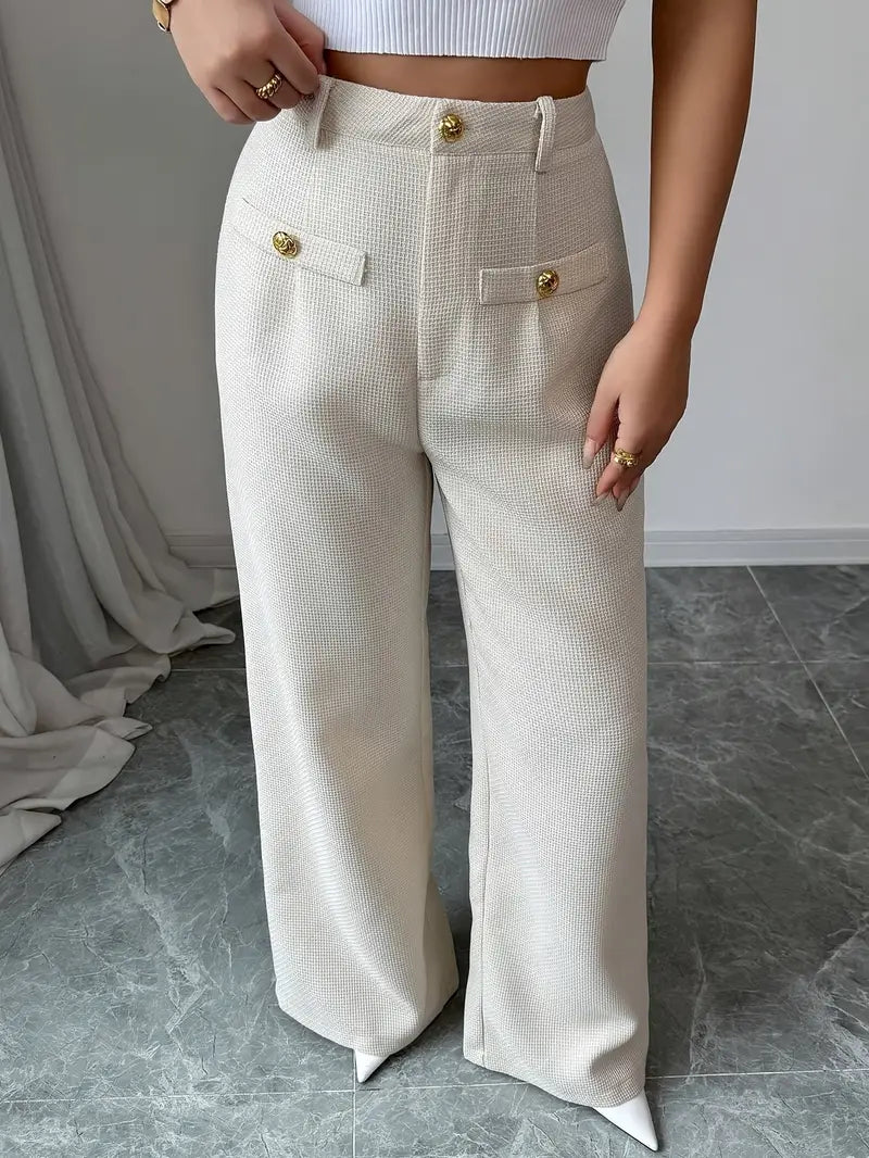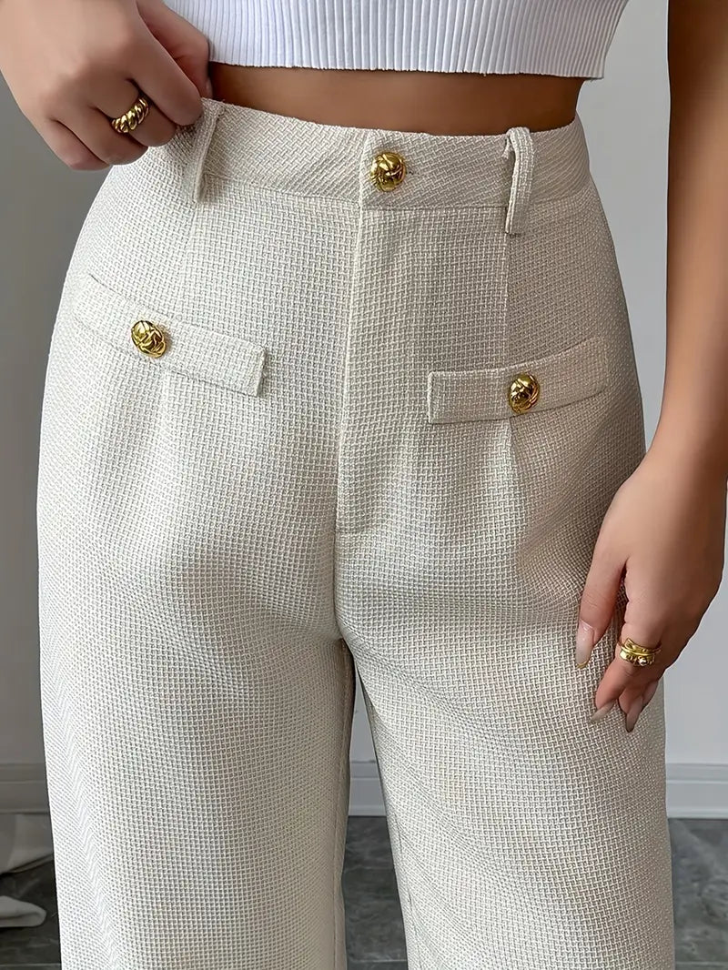 Old Money Casual High Waist Solid Button Straight Leg Pants