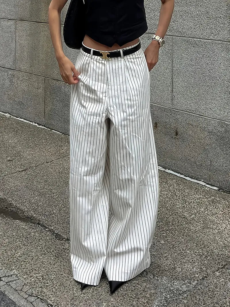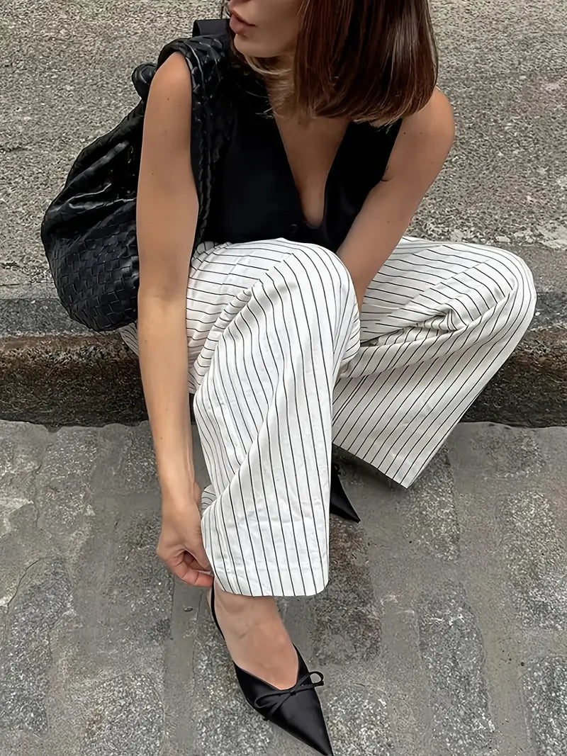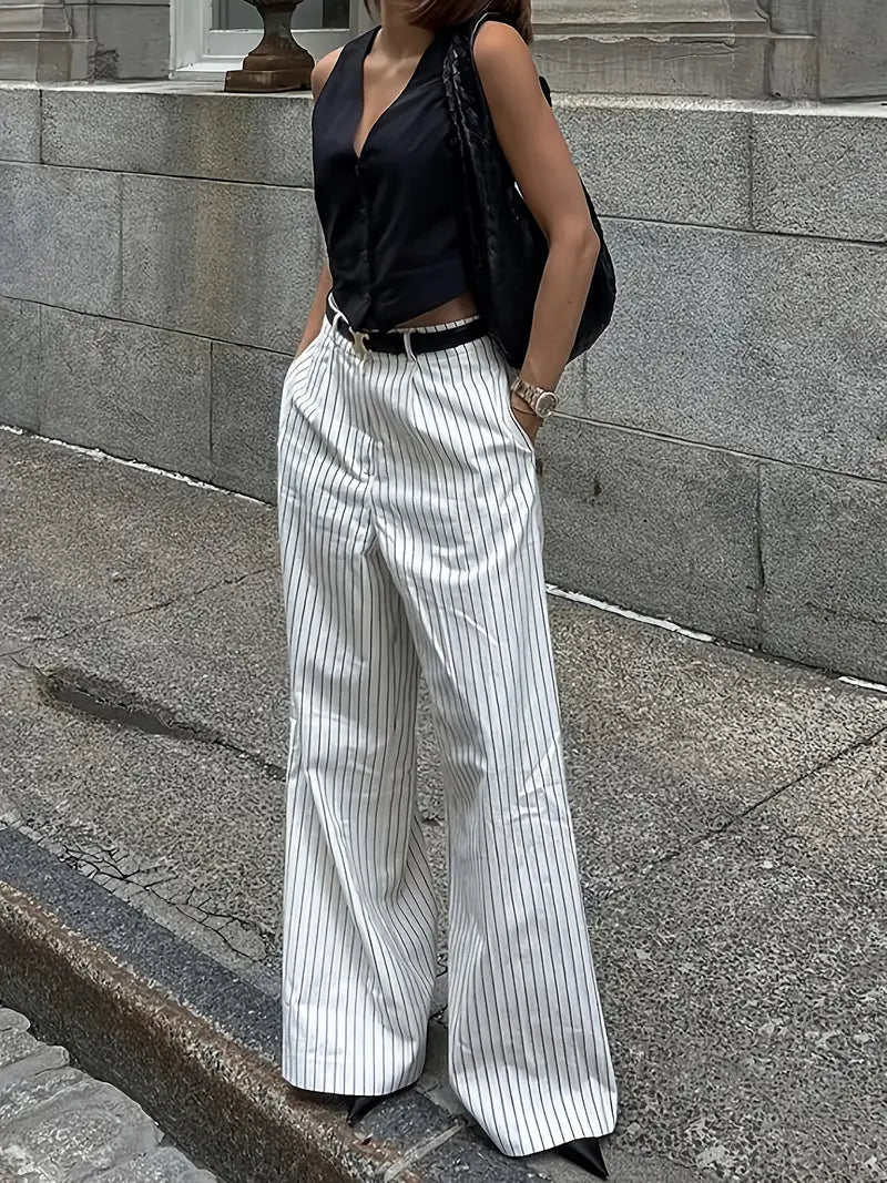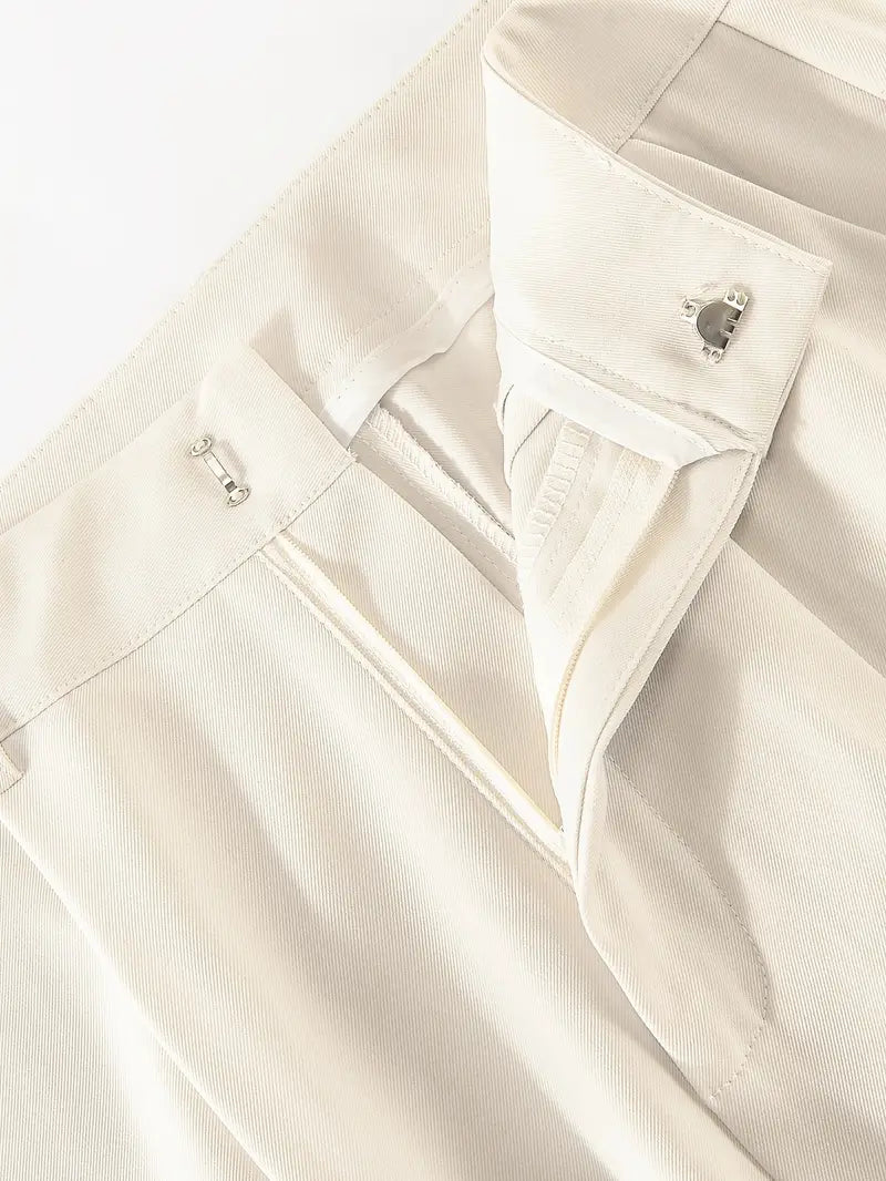 Old Money Casual High Waist Solid Button Straight Leg Pants