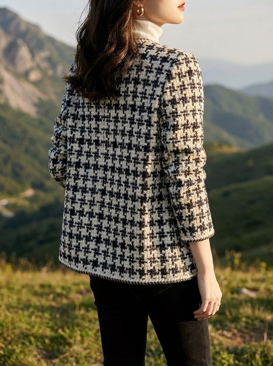 Elegant Houndstooth Formal Tweed Blazer