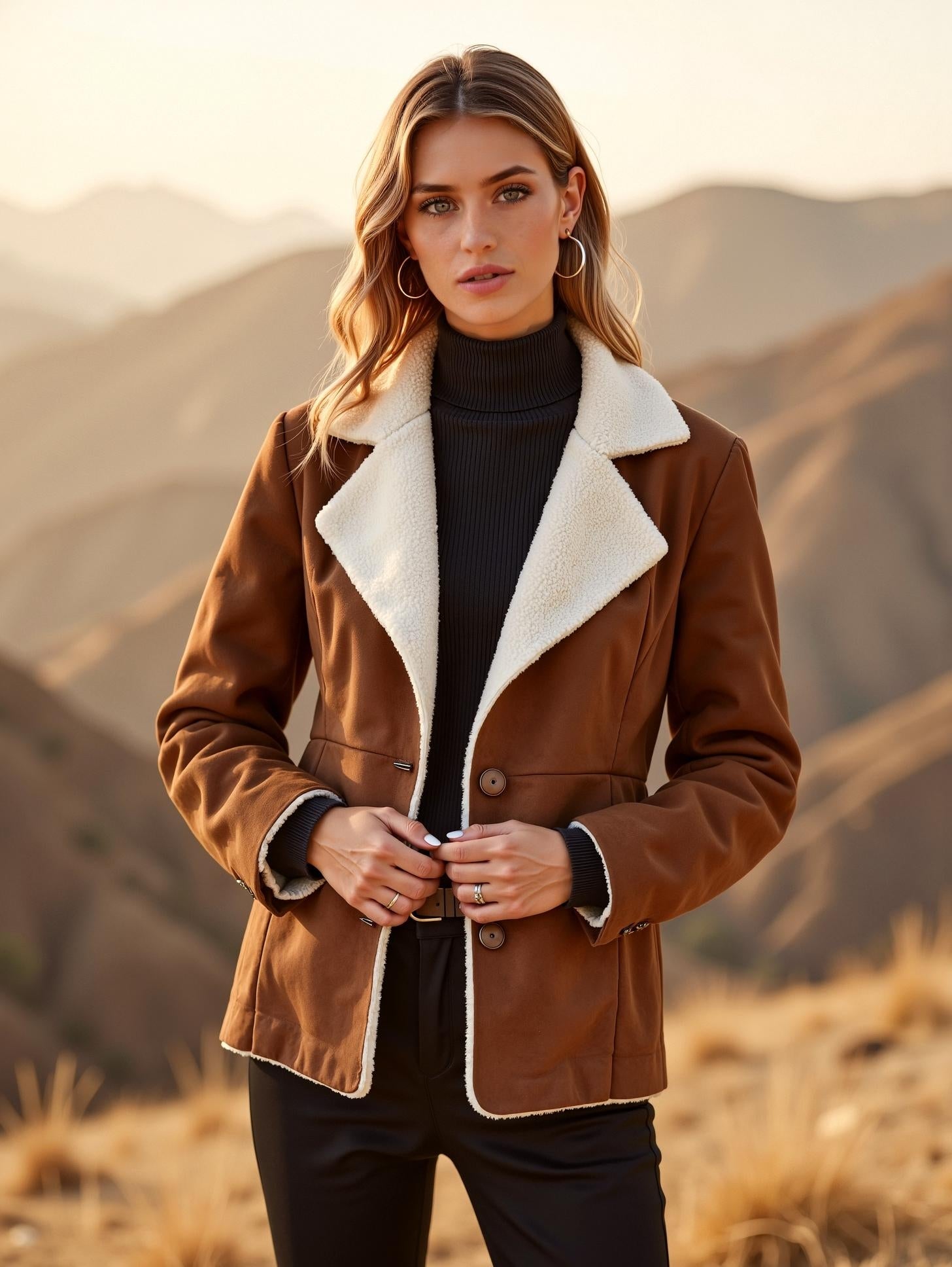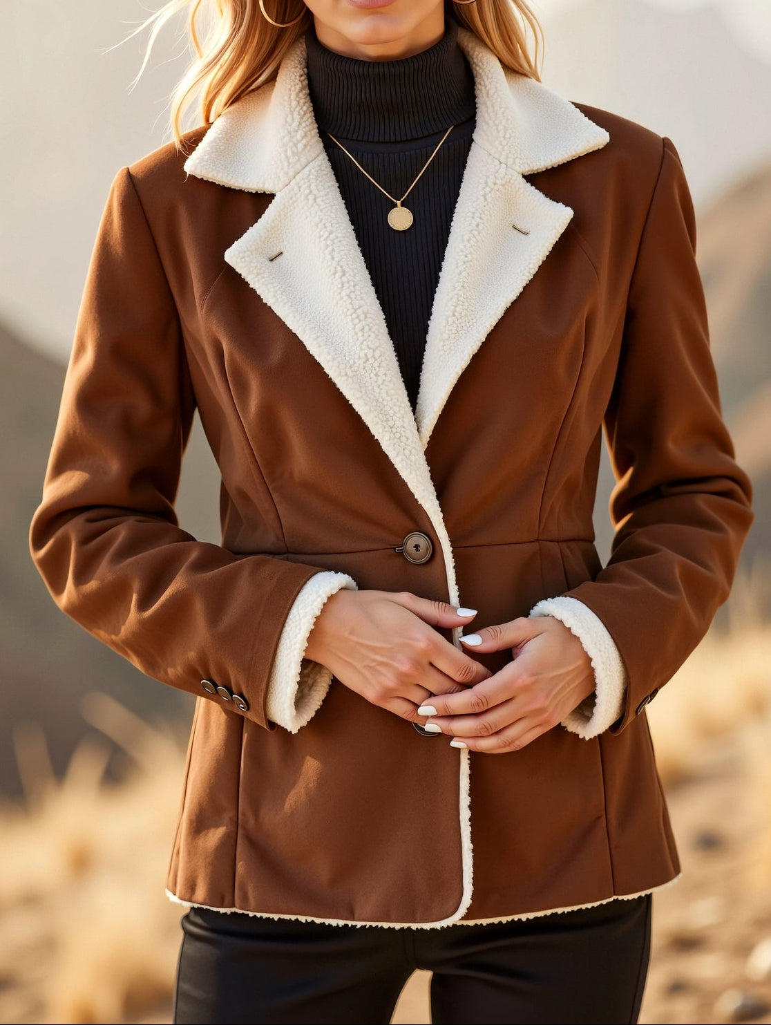 A soft and cozy old money jacket with a faux fur finish and elegant button front.