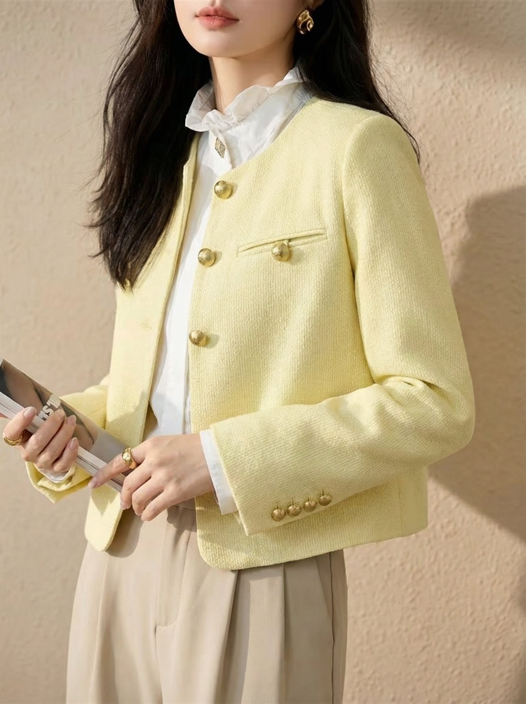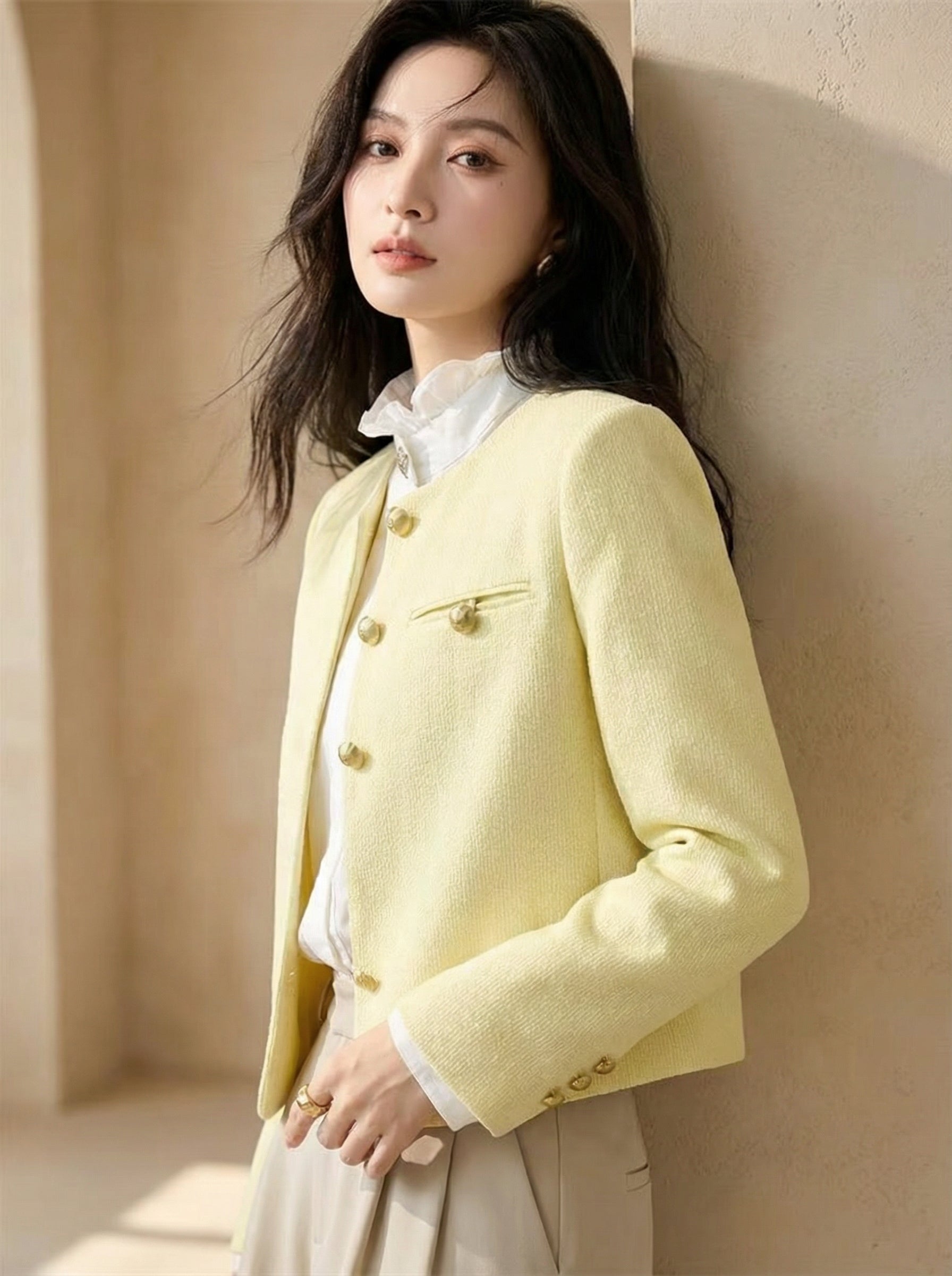 Elegant Yellow Outdoor Fragrant Jacket