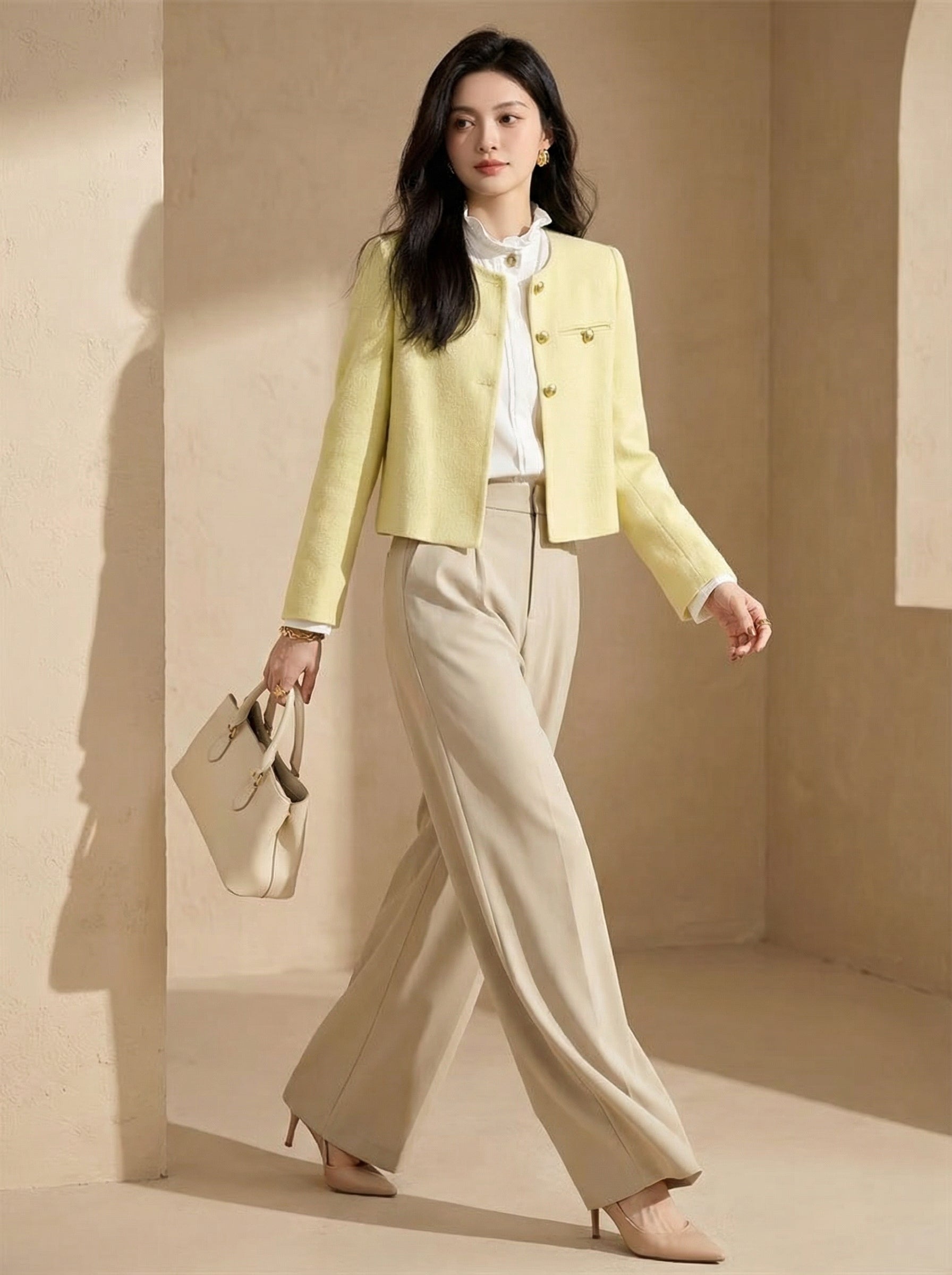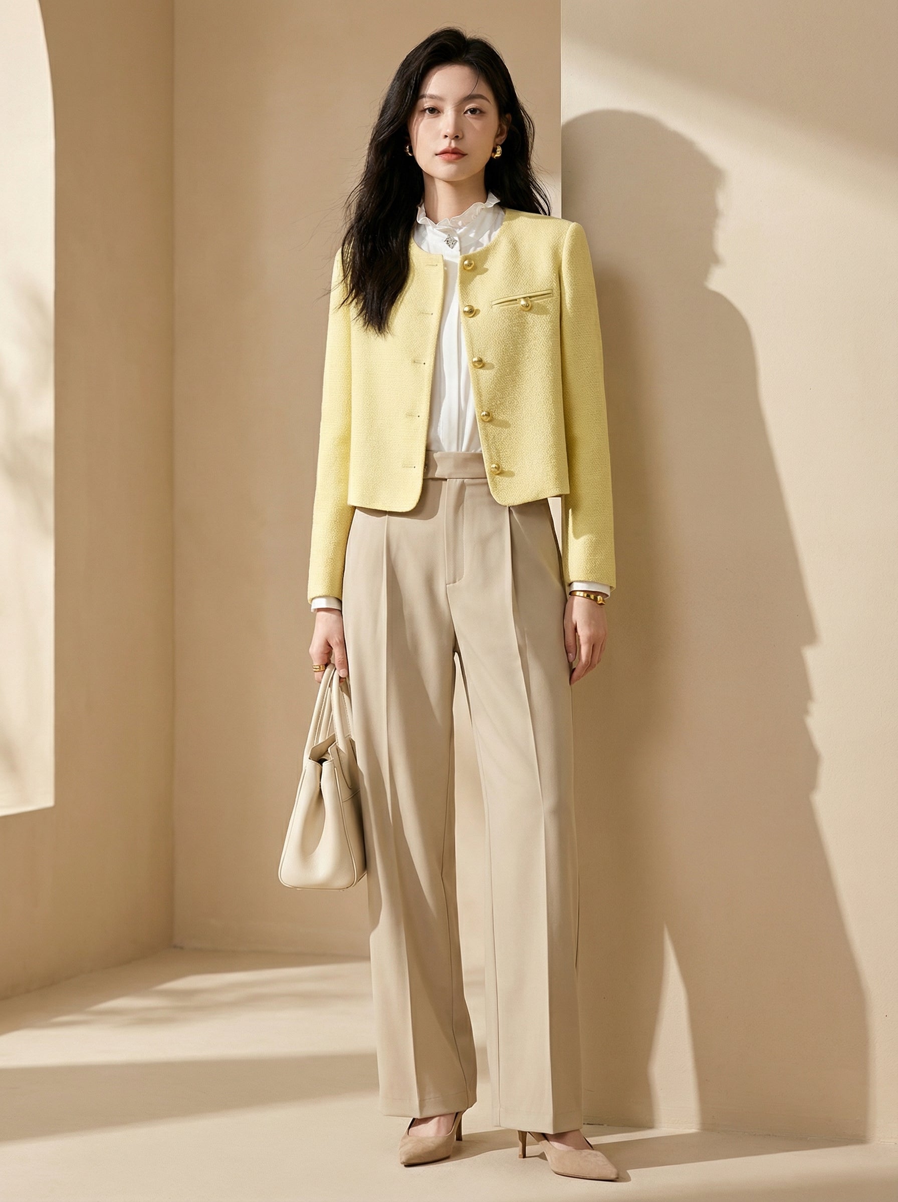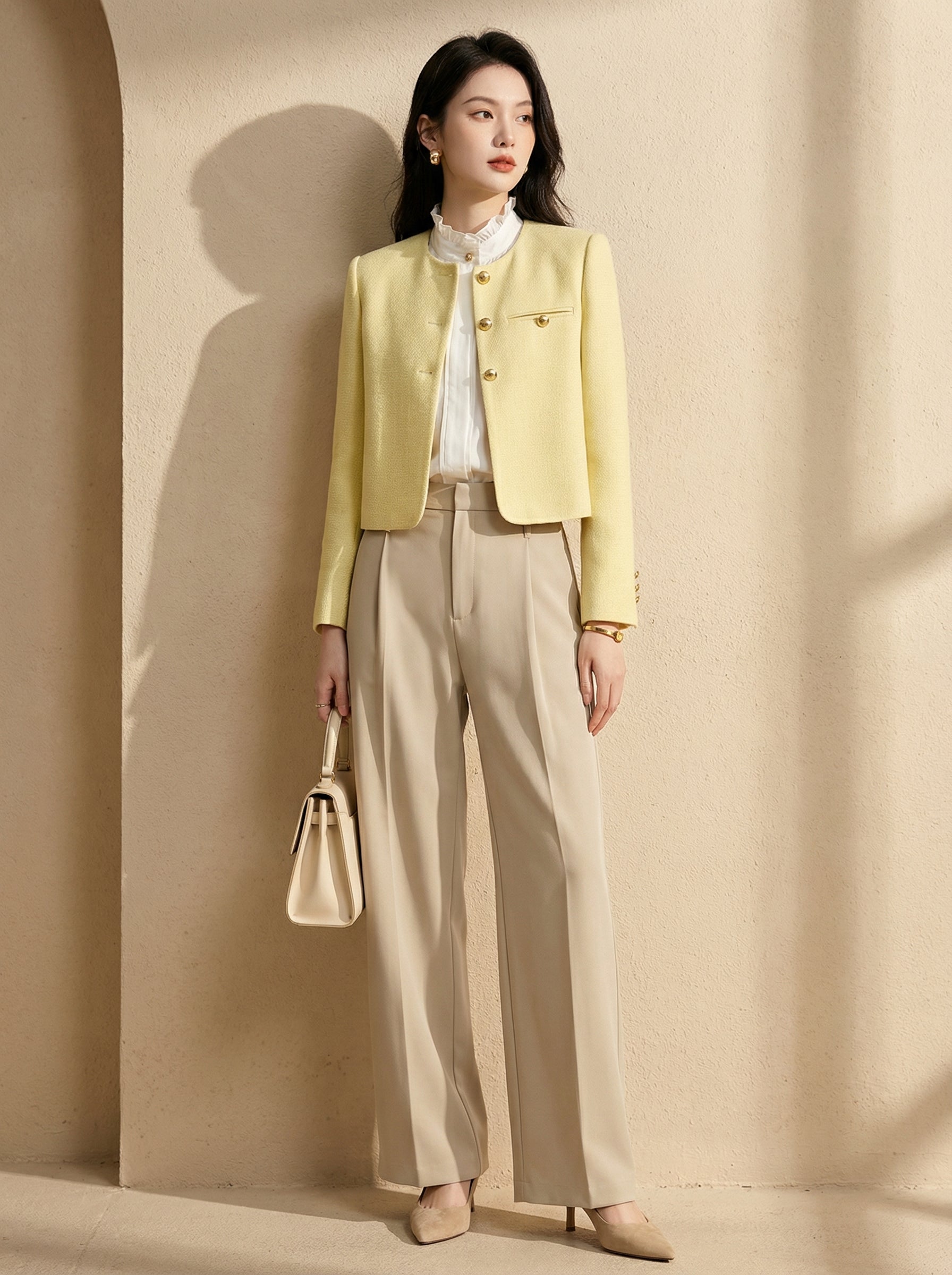 Its bright yellow tone adds quiet sophistication while keeping a refined, timeless charm.