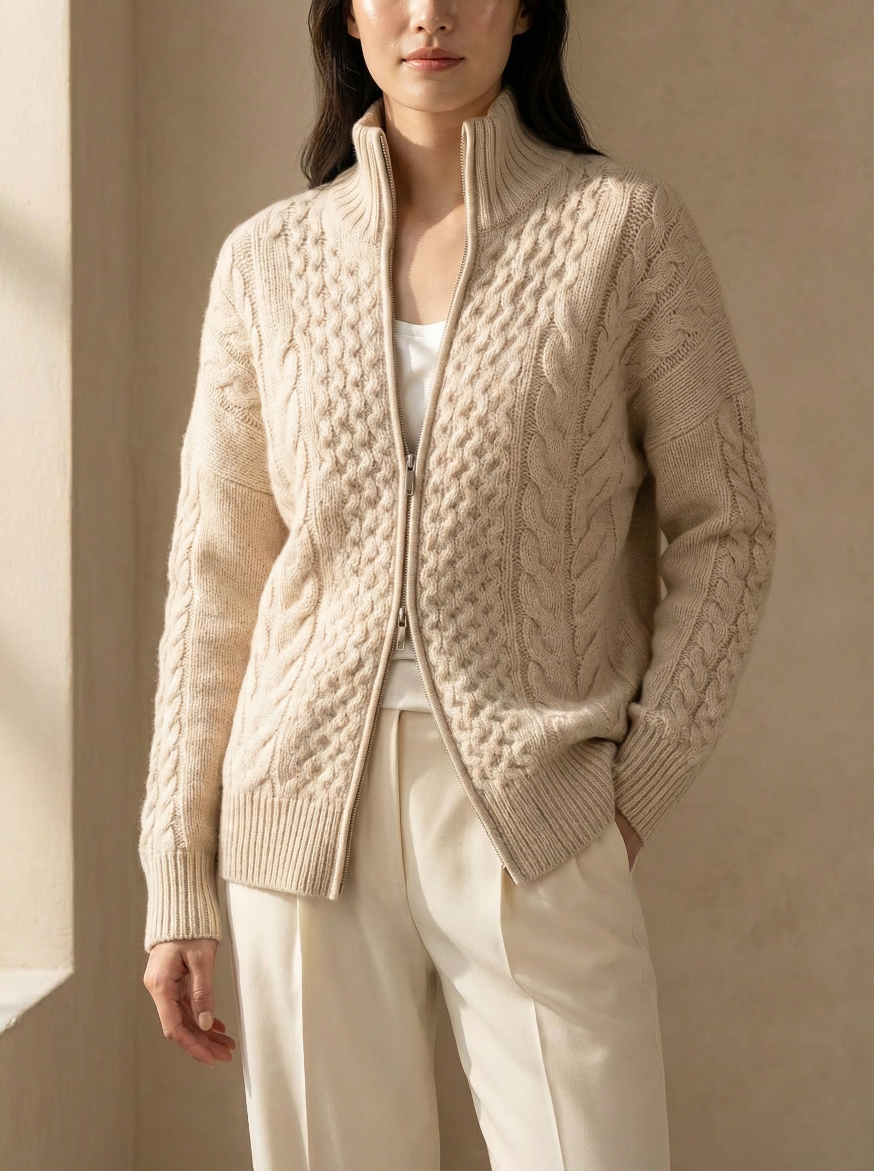 A premium old money cardigan made from 100% natural wool, designed for warmth, comfort, and timeless elegance.