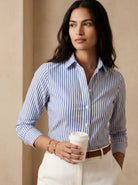 Old Money Cotton Striped Button Front Shirt