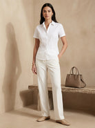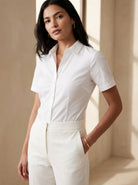 Old Money Short Sleeve Solid Button Front Shirt