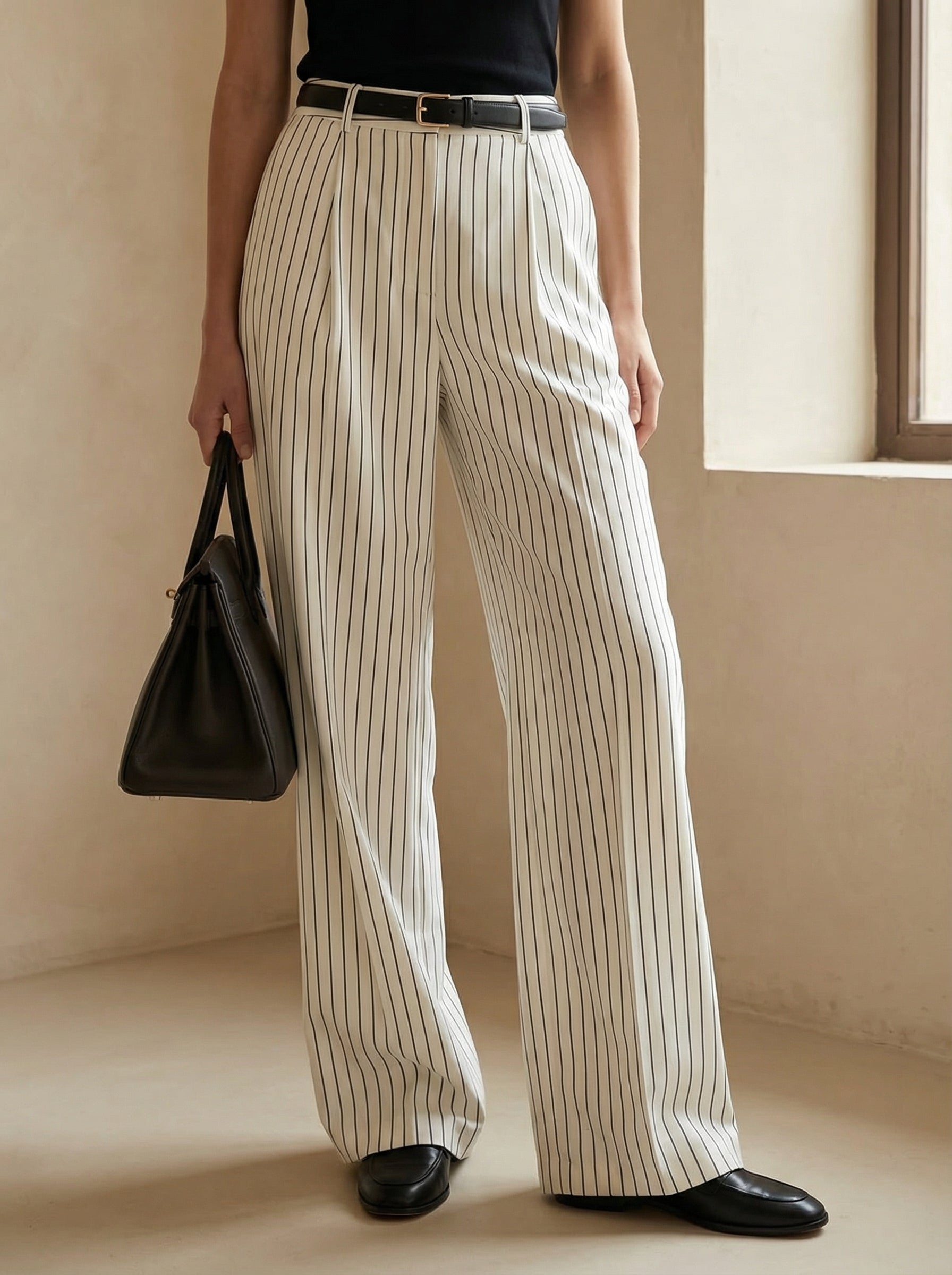 Old Money Wide Leg Striped Non-Stretch Trousers