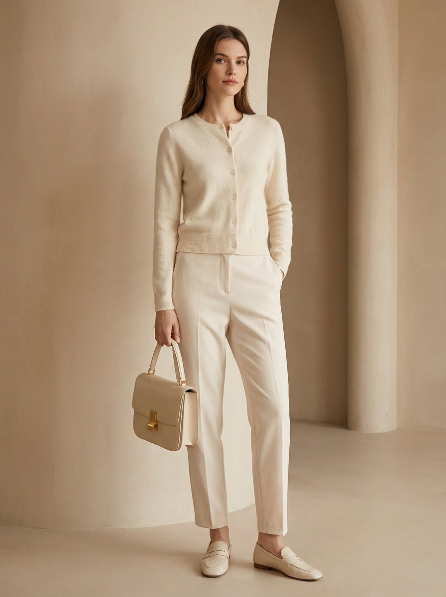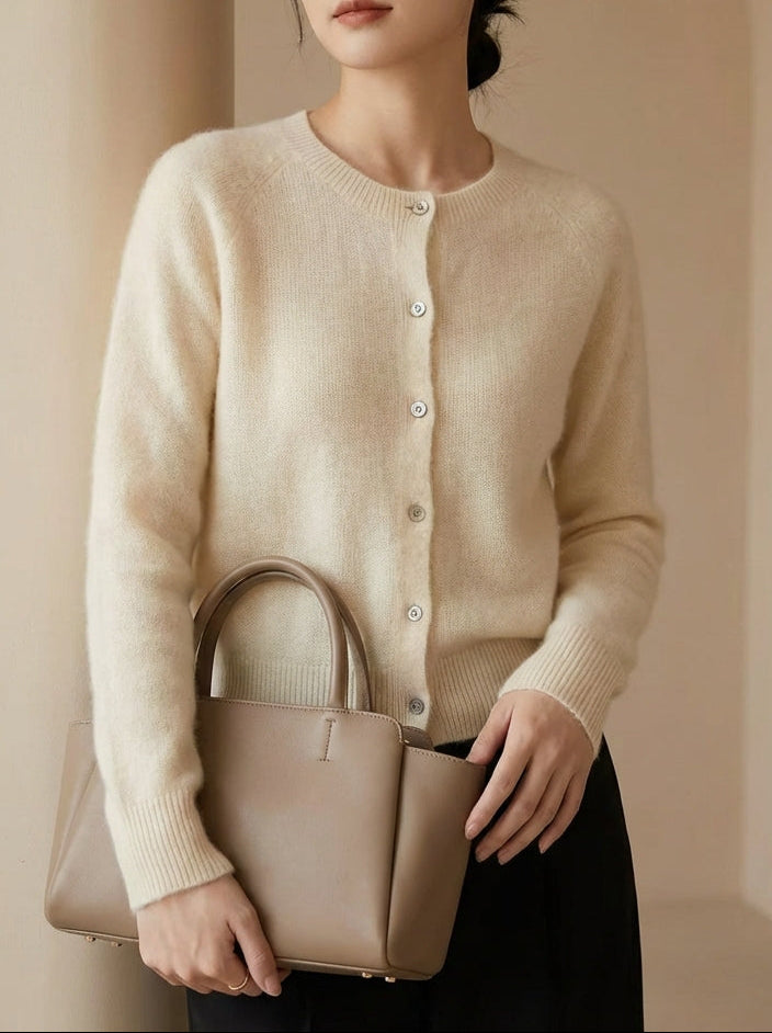 A soft, lightweight wool-blend cardigan that brings smart luxury and old money charm to any outfit.